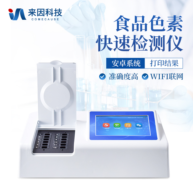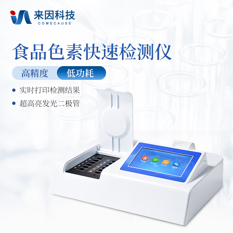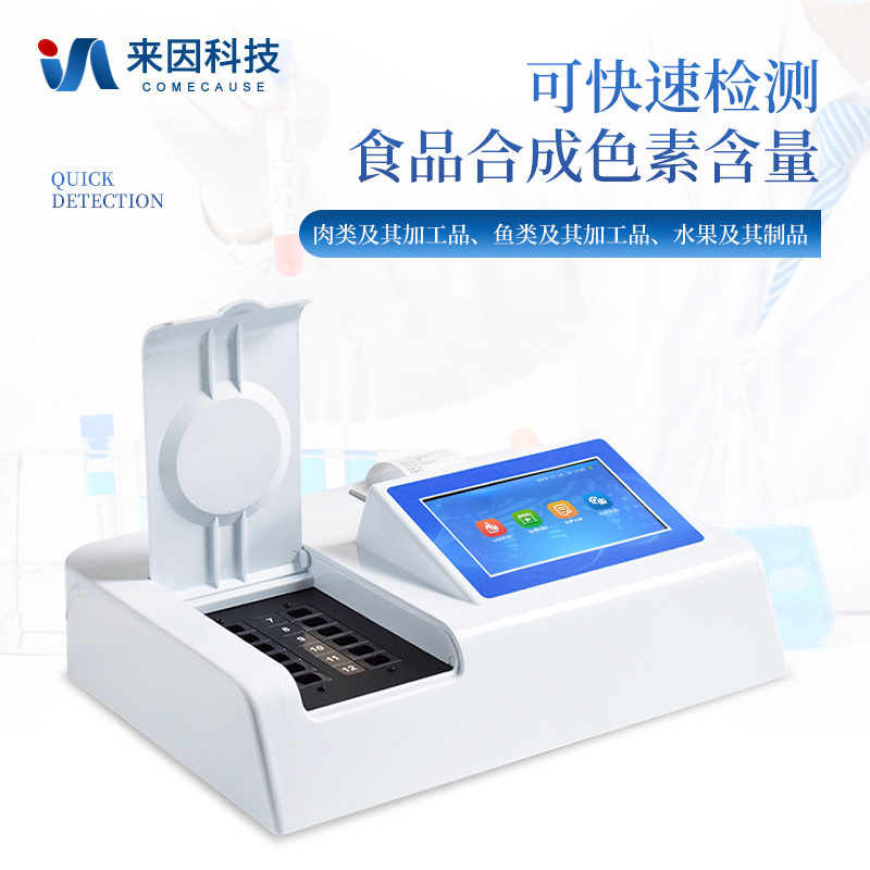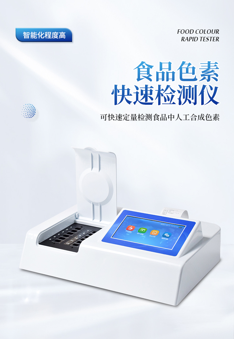 色素检测仪可快速定量检测食品中人工合成色素柠檬黄、日落黄、胭脂红、苋菜红、诱惑红、亮蓝、赤藓红的含量。